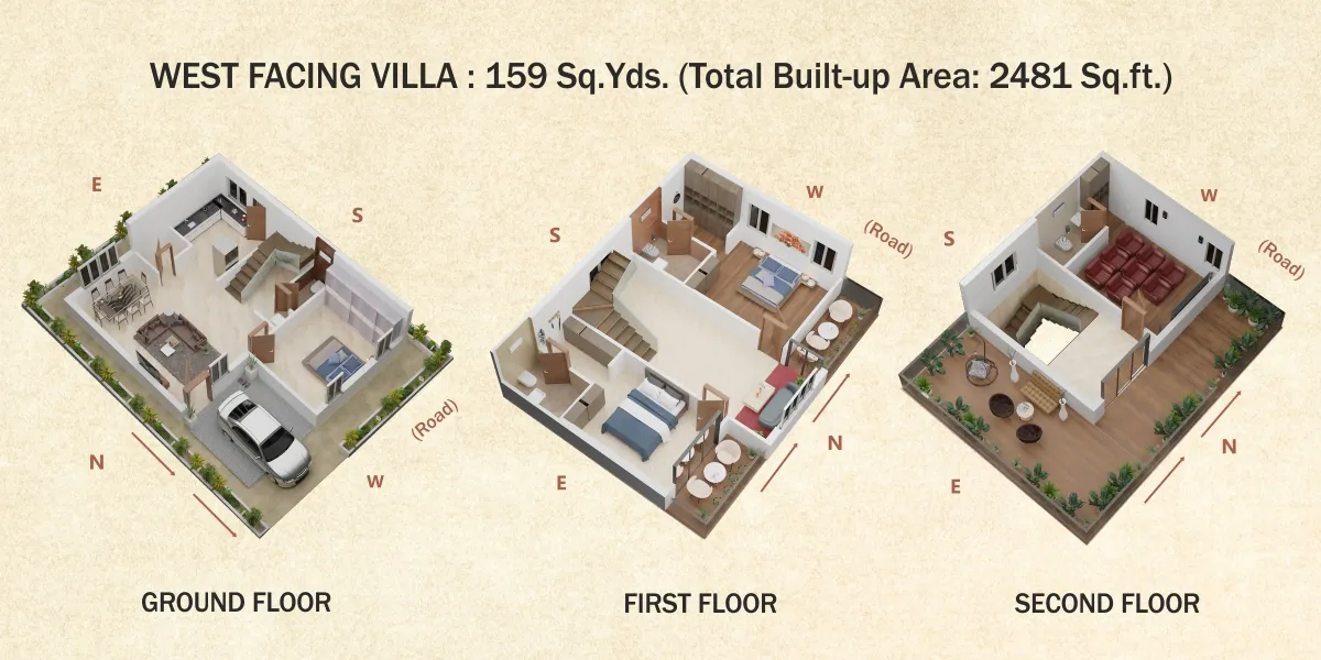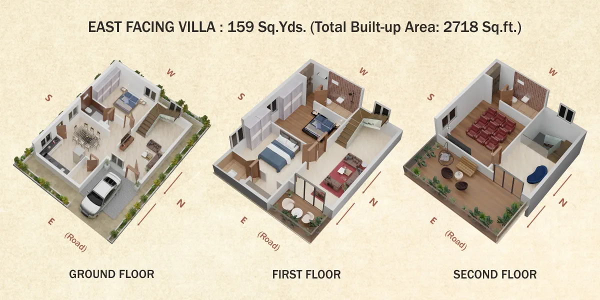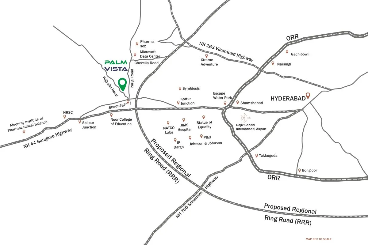 Palm Vista offers luxurious triplex gated villas in Shadnagar, blending modern design with generous, well-planned layouts. Each villa features state-of-the-art fixtures and elegant interiors, creating a serene and upscale living environment. Enjoy peace of mind with 24/7 professional security and exclusive access to a clubhouse complete with a refreshing swimming pool, a fully-equipped fitness center, and additional premium amenities—all designed to elevate your everyday lifestyle.